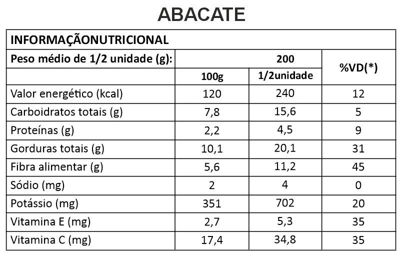 Rico em gorduras monoinsaturadas, que são benéficas para o coração, o abacate também é uma excelente fonte de antioxidantes, como a luteína, que auxilia na saúde ocular. Além disso, seu consumo pode ajudar a reduzir os níveis de colesterol LDL (o “mau colesterol”) e aumentar o HDL (o “bom colesterol”). Os principais nutrientes presentes no abacate incluem vitamina E, vitamina C, potássio, fibras e gorduras saudáveis, que promovem saciedade e saúde cardiovascular.