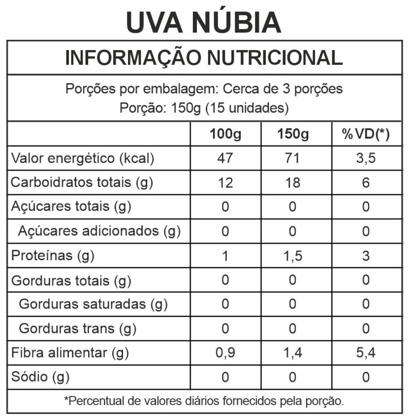 A Uva Núbia é uma variedade sem sementes, que se destaca pelo seu tom escuro e brilhante. Seu sabor naturalmente doce, aliado à baixa acidez, conquistou consumidores no Brasil e no exterior, tornando-se uma das uvas mais apreciadas da atualidade.